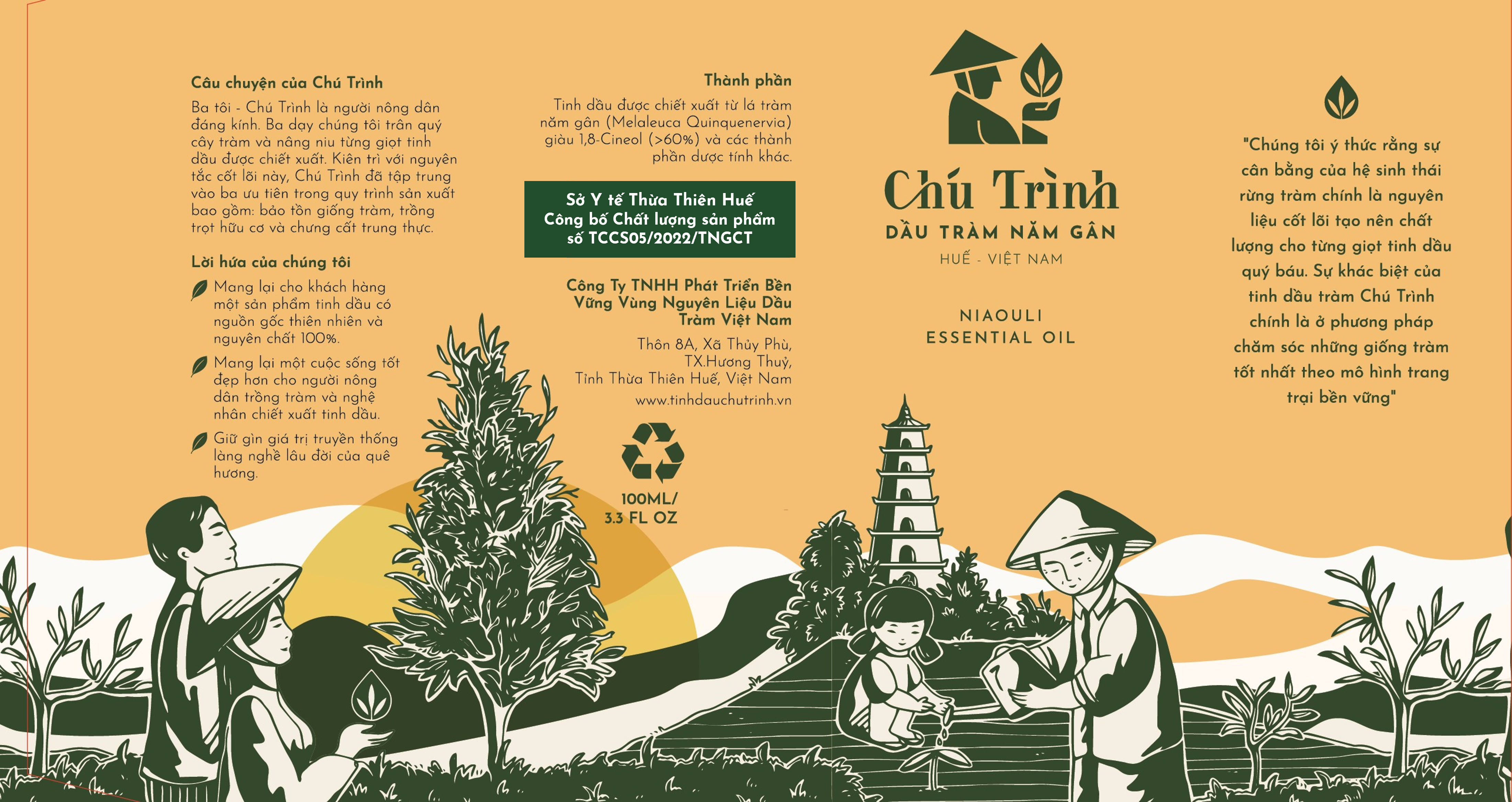 Công ty TNHH Phát triển bền vững vùng nguyên liệu dầu tràm Việt Nam (MVSD) thành lập vào năm 2020 tại Huế, tiền thân là trang trại Chú Trình có kinh nghiệm trồng và chiết xuất tinh dầu tràm năm gân từ năm 2016.